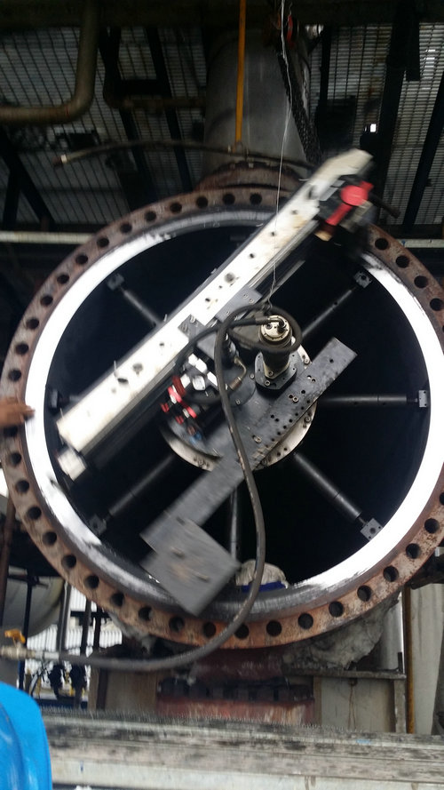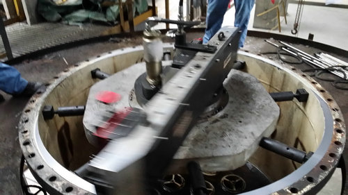 我们公司的专业设备可直接至现场,在任意位置、角度直接安装在法兰内侧或外侧,安装后进行车削修复,使密封面达到密封的技术要求。减少拆装、运输时间和成本。 此技术广泛应用于海洋、石油化工、水利、钢铁、电力等行业